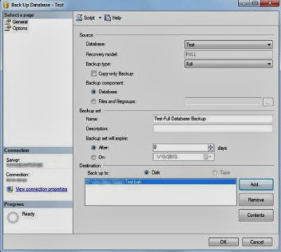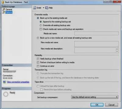 Click the browse button (…). Enter the details when the Select backup devices dialogue box appears. Select device type from the list in the Backup media type box (you can use Add to add more devices); click OK.