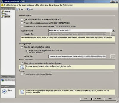 Verity the name of the database to be restored in the Database box (you can change the name if required).
